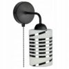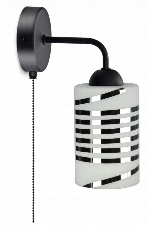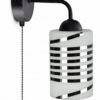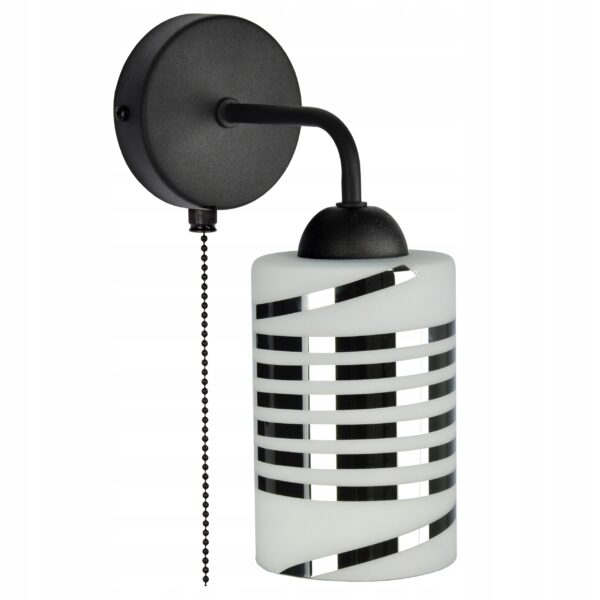 Praktyczny i nowoczesny kinkiet zbudowany w oparciu o szklany klosz zdobiony chromowanymi pasami.