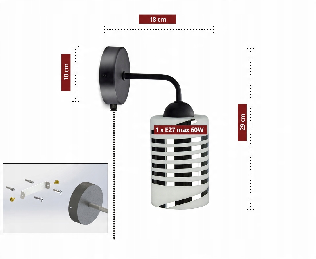 - Źródło światła: E-27 - zalecane LED lub świetlówki kompaktowe
