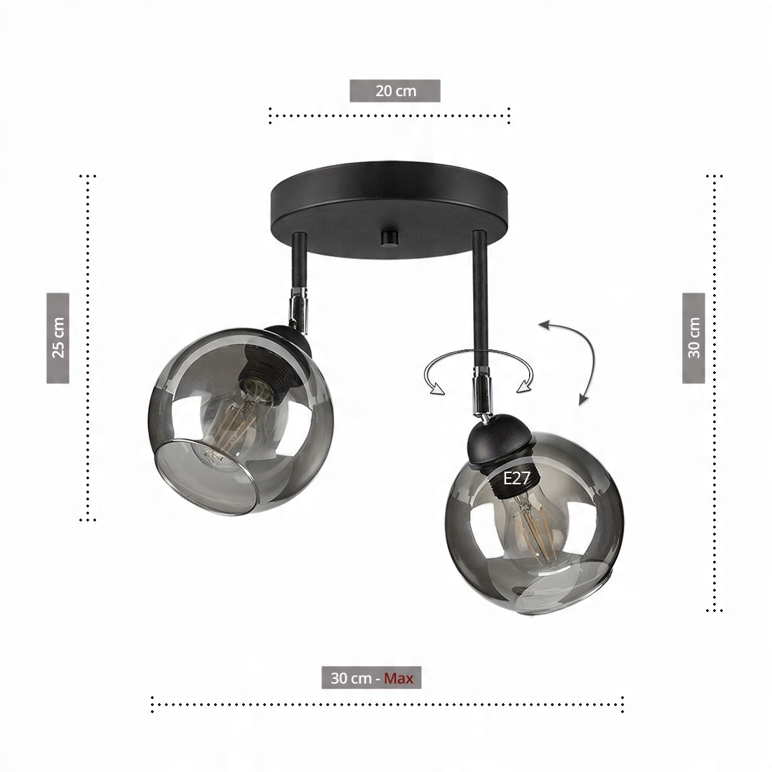 - Źródło światła: E-27 - zalecane LED lub świetlówki kompaktowe