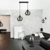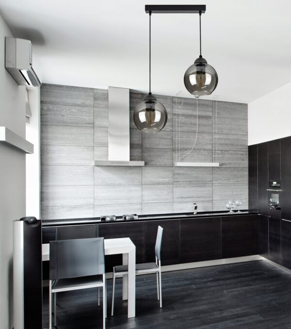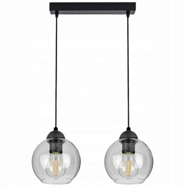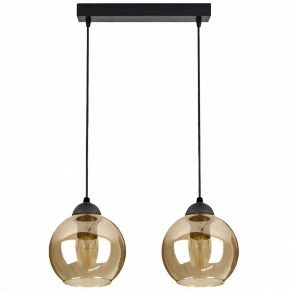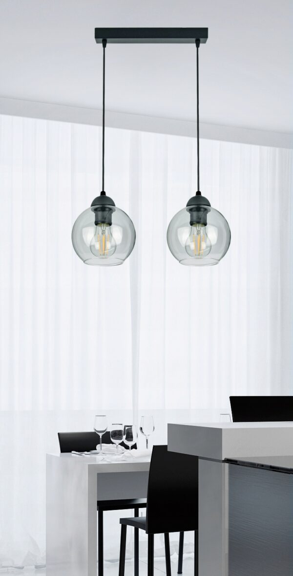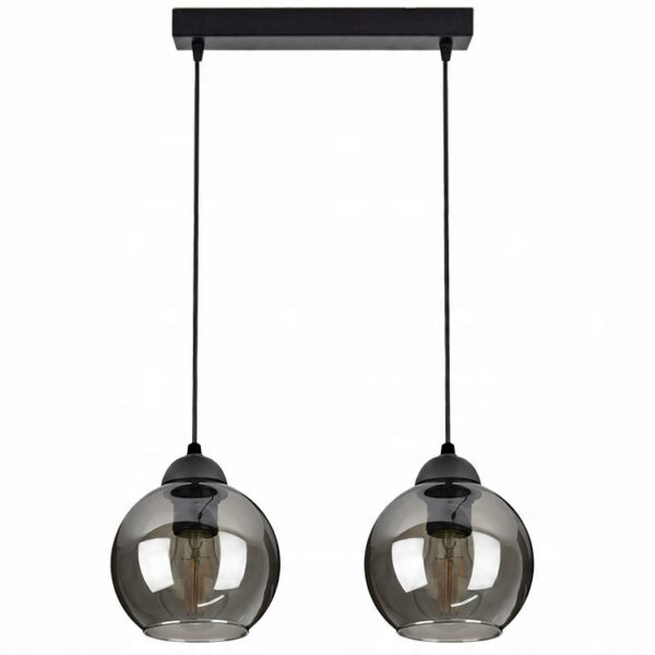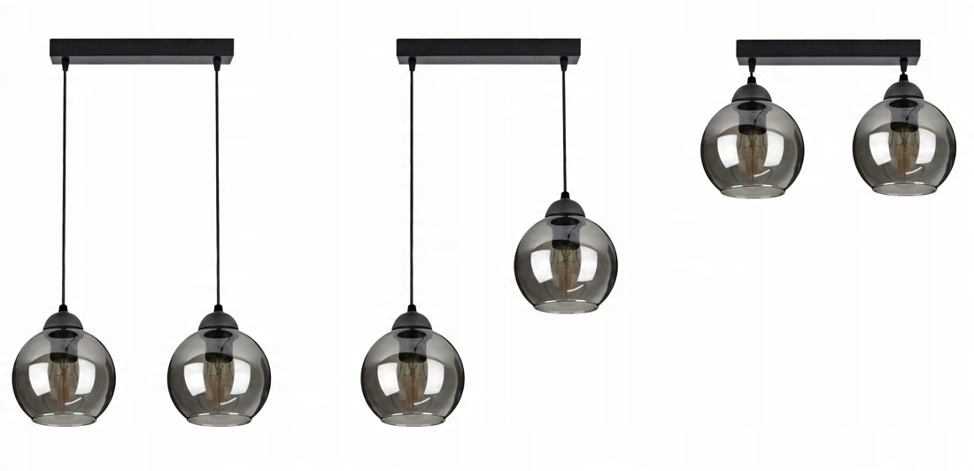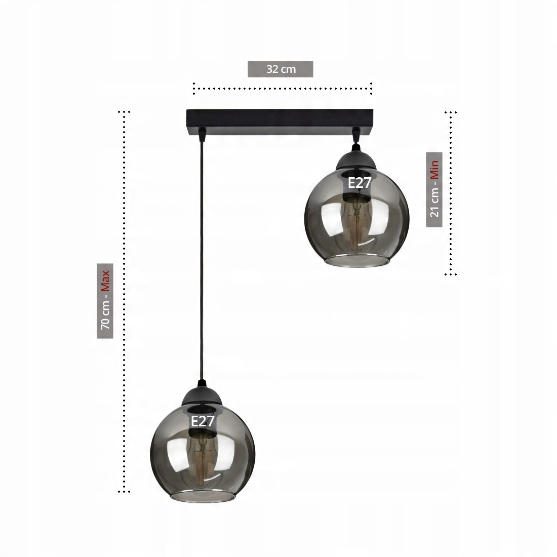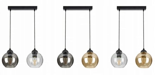 Praktyczna i nowoczesna lampa wisząca wyposażona w dwa szklane klosze dostępne do wyboru w różnych odcieniach.