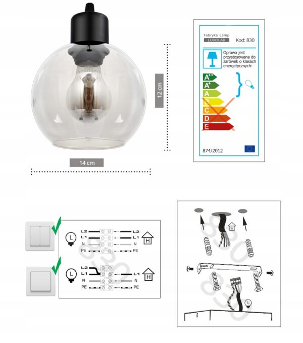| Maksymalna moc jednej żarówki | 15 W LED |