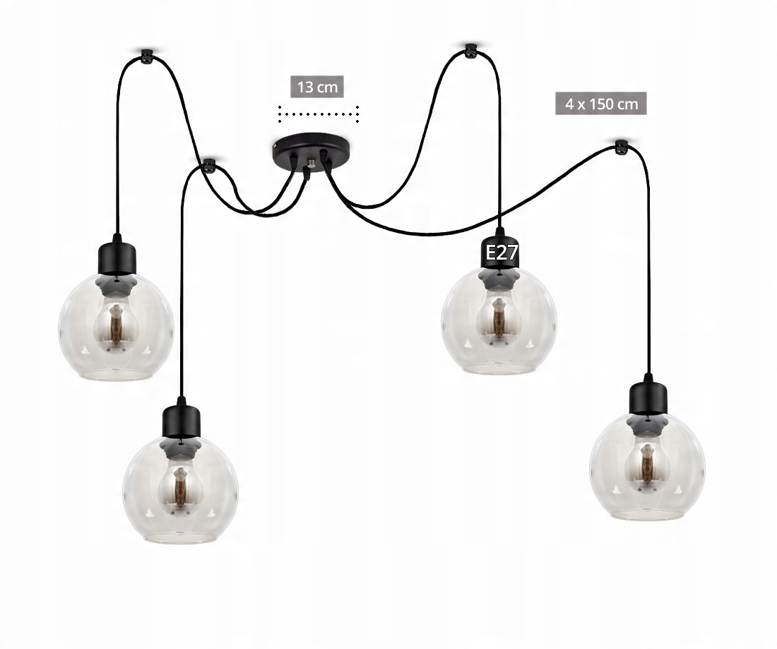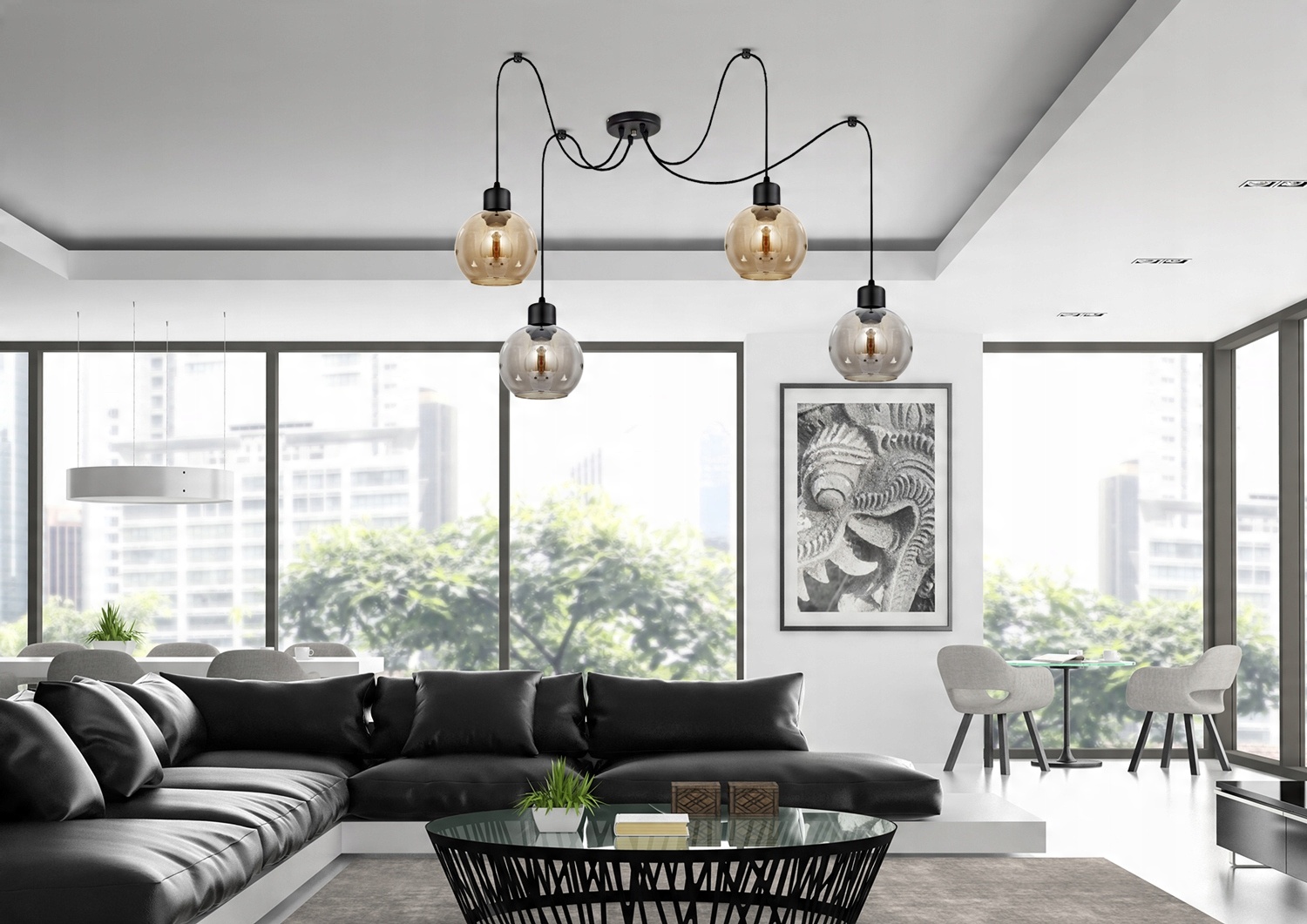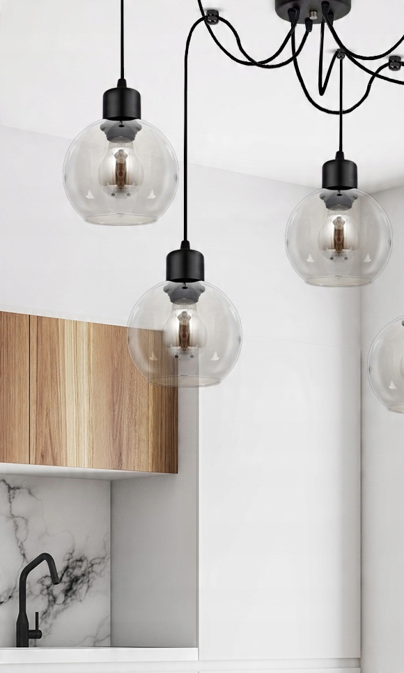 Szklana Lampa Wisząca Sufitowa Żyrandol Pająk KULE